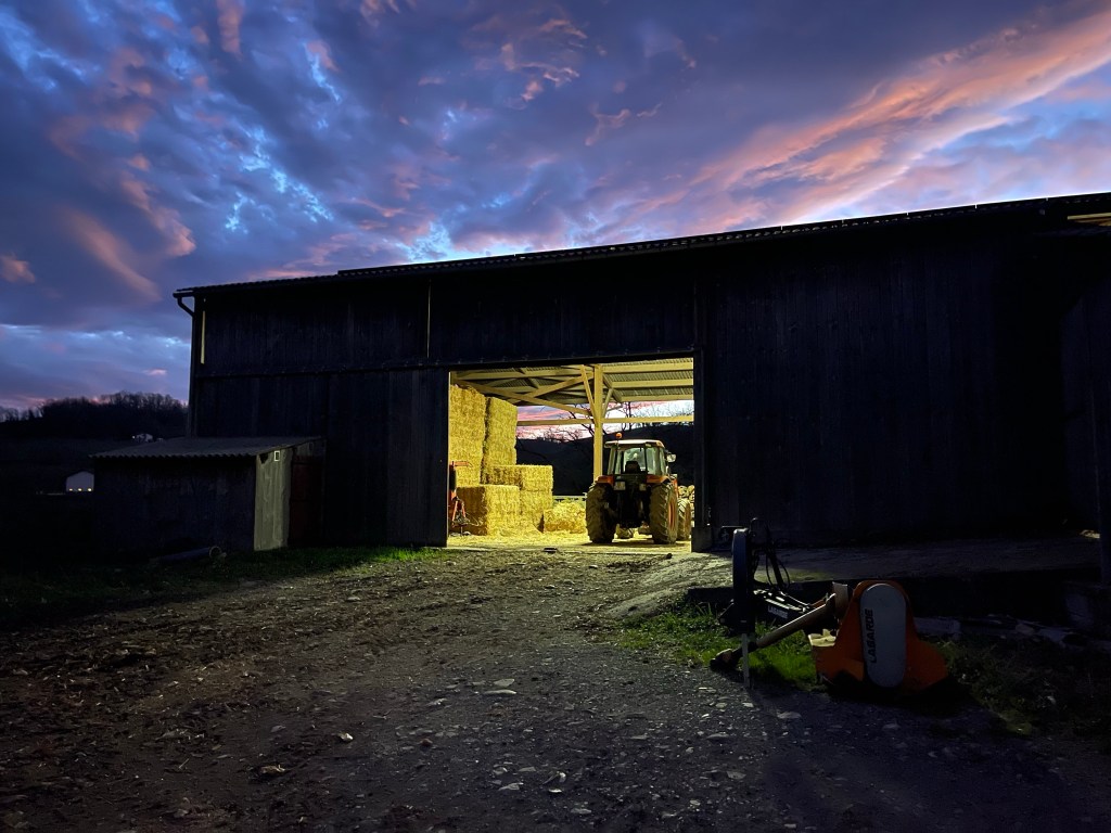 After a short walk, the town cobblestones lead to an unlit road surrounded by farmland, so I turn on my headlamp. Thank God I have it, because the first thing I enjoy this morning is the fragrance of cow dung. I point the light down at my feet to make sure I don’t step on any.