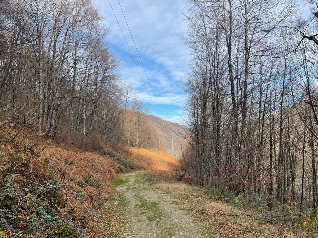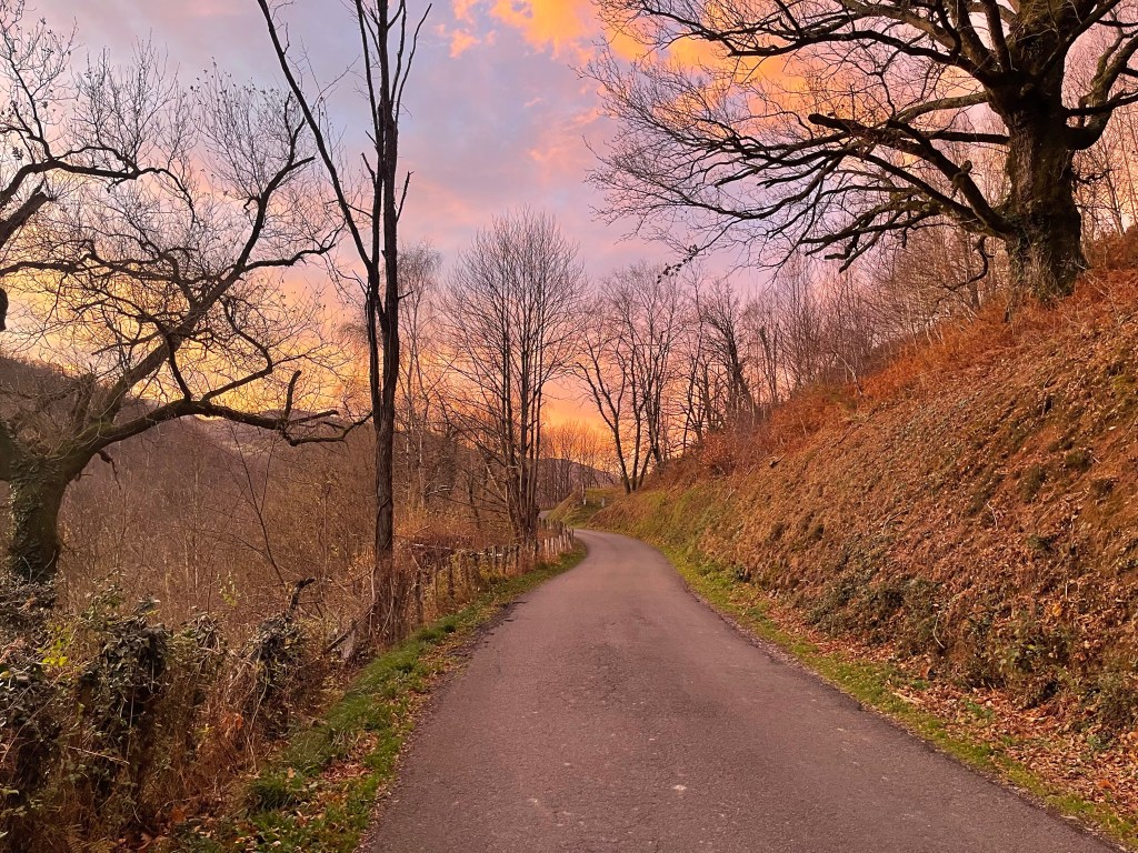 Quite a bit of the walk is on the N-135, the highway between Roncesvalles and Saint-Jean-Pied-de-Port that my taxi driver probably took yesterday. Exiting the highway signals the start of the incline up towards Roncesvalles, which turns out to be more taxing than expected, although the pathways are beautiful. So much for the “easier” Varlcarlos route. It’s not so fun at first, but as I push myself, and the sun angles lower in the sky, the land glows, and it starts to feel rewarding.