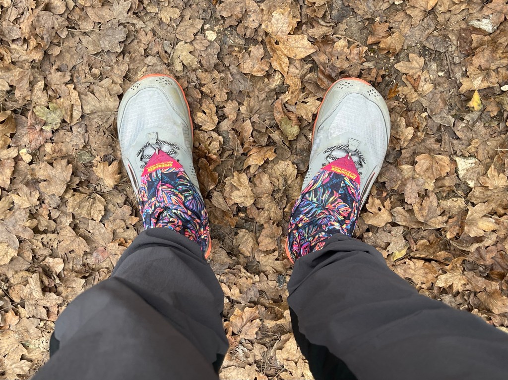 After getting pebbles and sharp pines in my shoes a couple of times today, I decided to put on my gaiters to save time stopping to untie my laces and shake the debris out. Initially got them for snowy days, but I think I’ll wear them from this point on.
