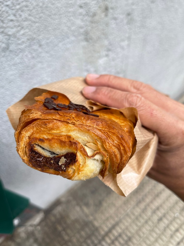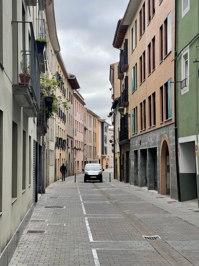 At Burlada, the neighbouring town, there are modern buses, open shops, and town activity—a contrast to what we’ve experienced the past two days. I see a bakery with a decent looking napolitana chocolate, and I miss pain au chocolat so much that I go in to buy one. It’s good. At the neighbouring mart, I also buy Takis, which if you don’t know, is one of the best snacks in the world.