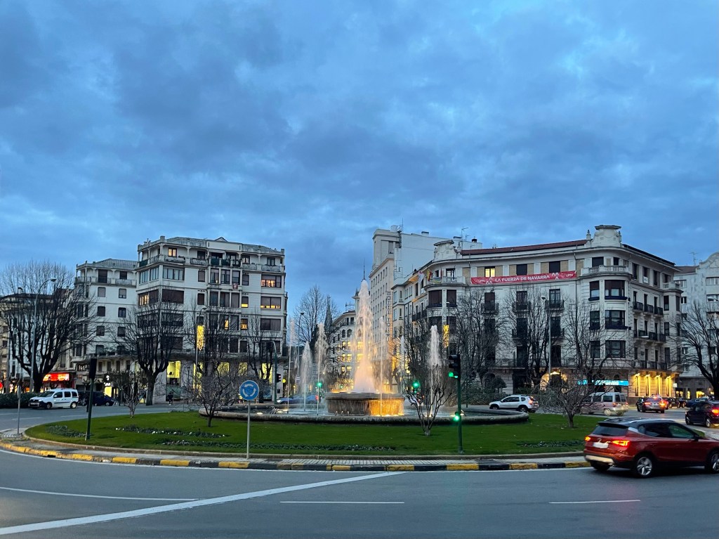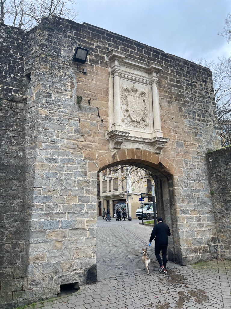 Leaving Burlada, I walk through a straight road lined with private estates on each side. I eventually reach an interesting castle area, and walk up a slope. At the top is a drawbridge leading to an archway, and through that I enter Pamplona.
