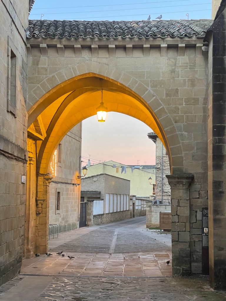After a tunnel, I walk past some wheat, and am greeted by the twittering of birds as they fly out from the stalks, up and about. The road leads to a nonchalant entry to Villatuerta via private bungalows. Villatuerta feels modern but suburban, and is super quiet too.
