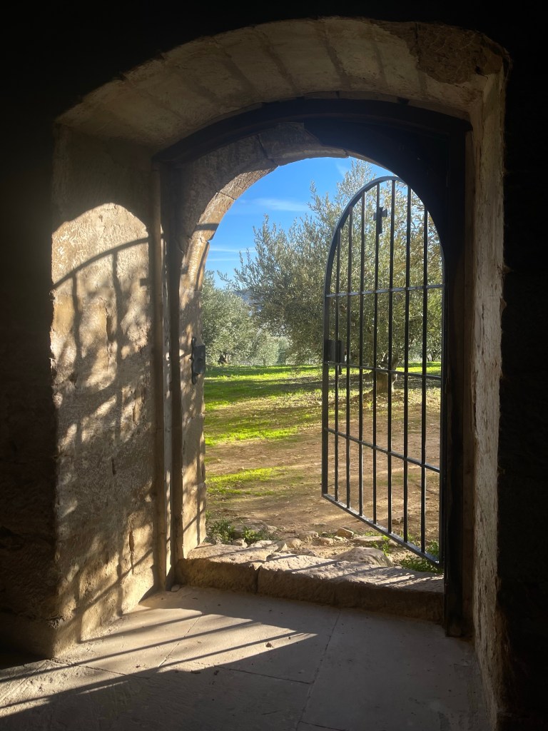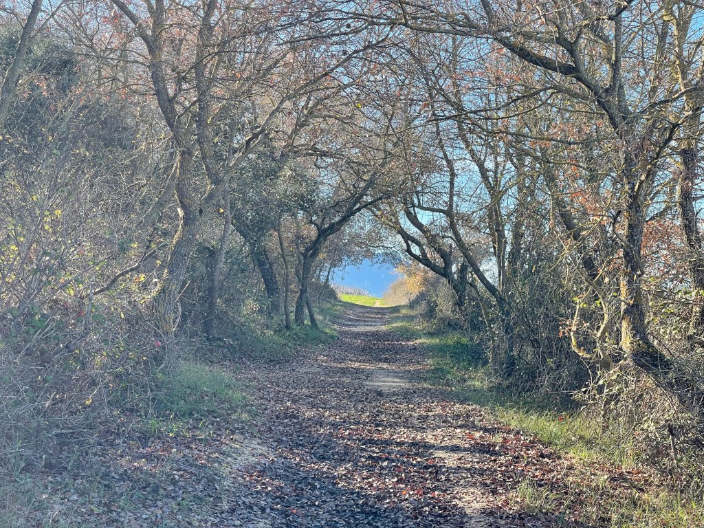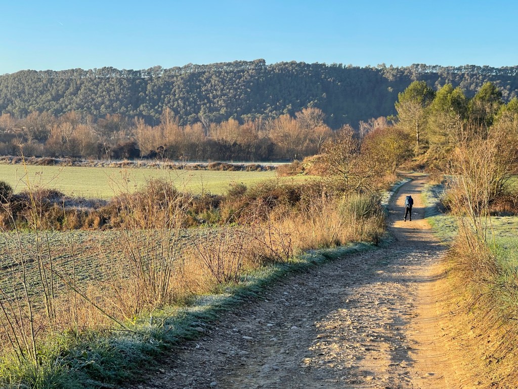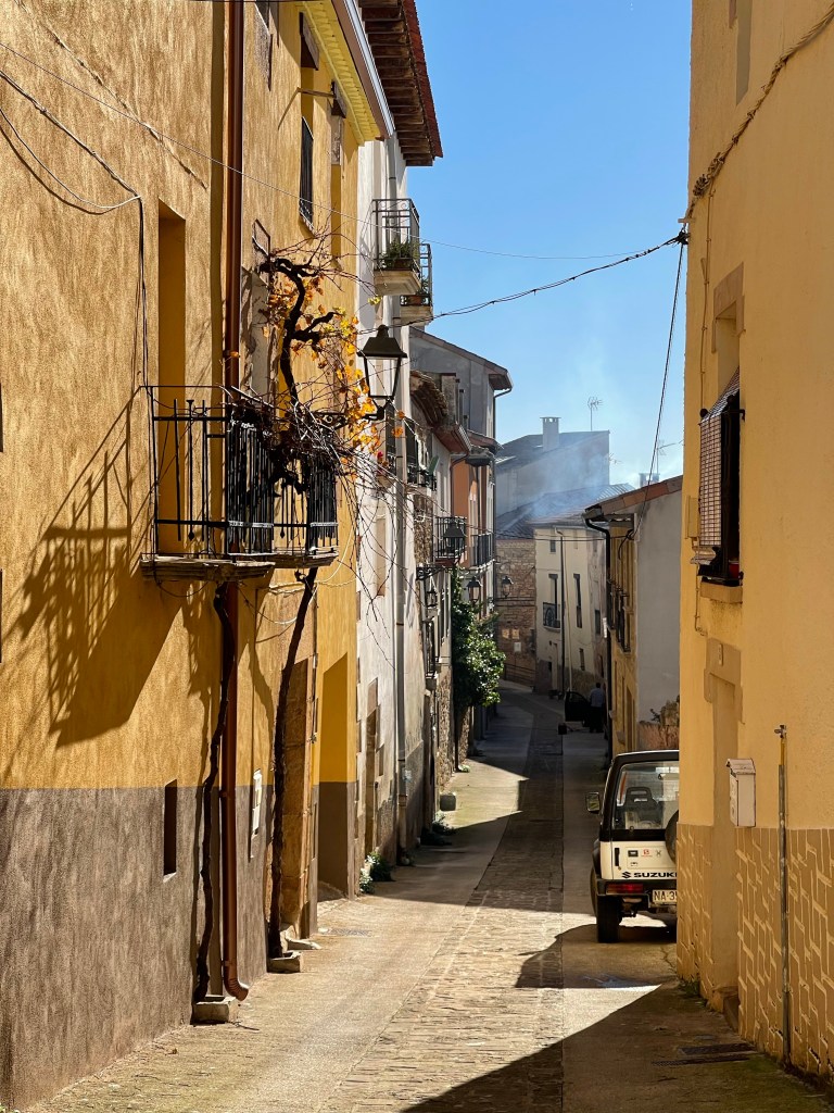 The town itself is empty and quiet, and I pass through it quickly. I walk past vineyards while the town of Cirauqui lies ahead. I’m alone today, but my shadow accompanies me right ahead as I walk directly west with the sun behind me.
