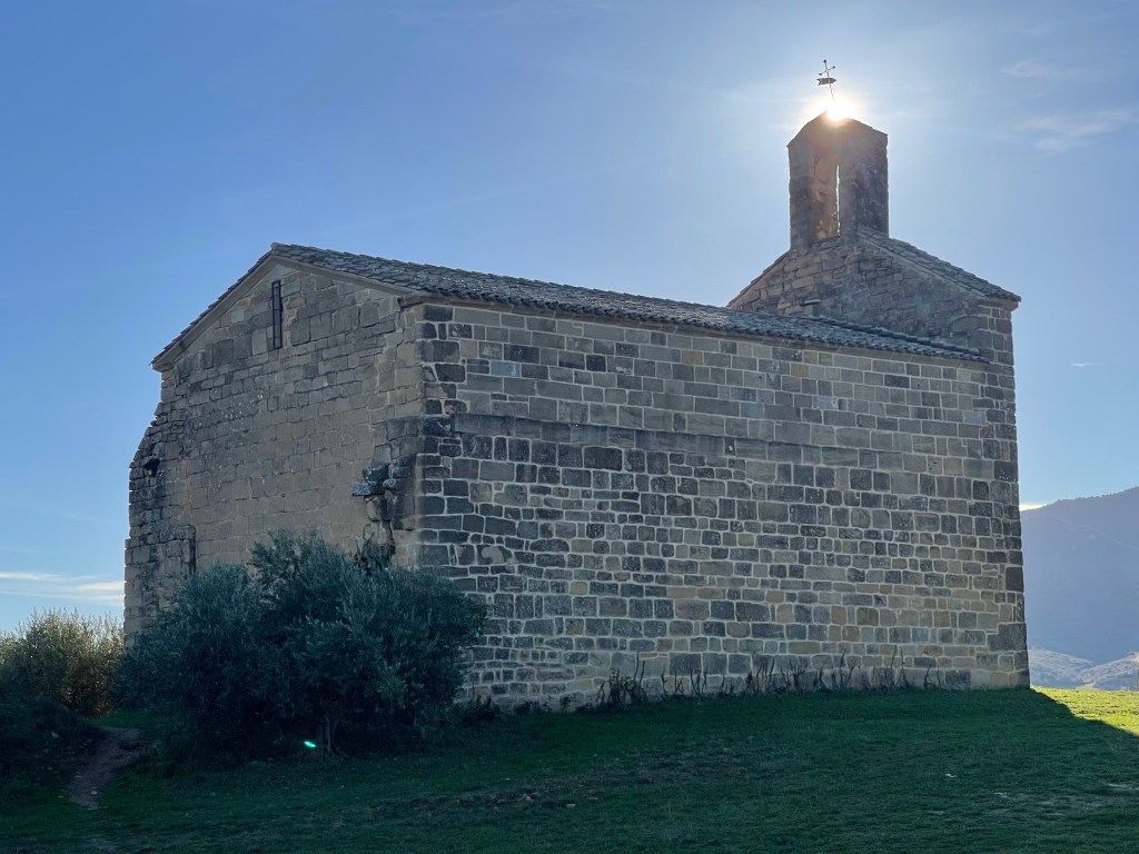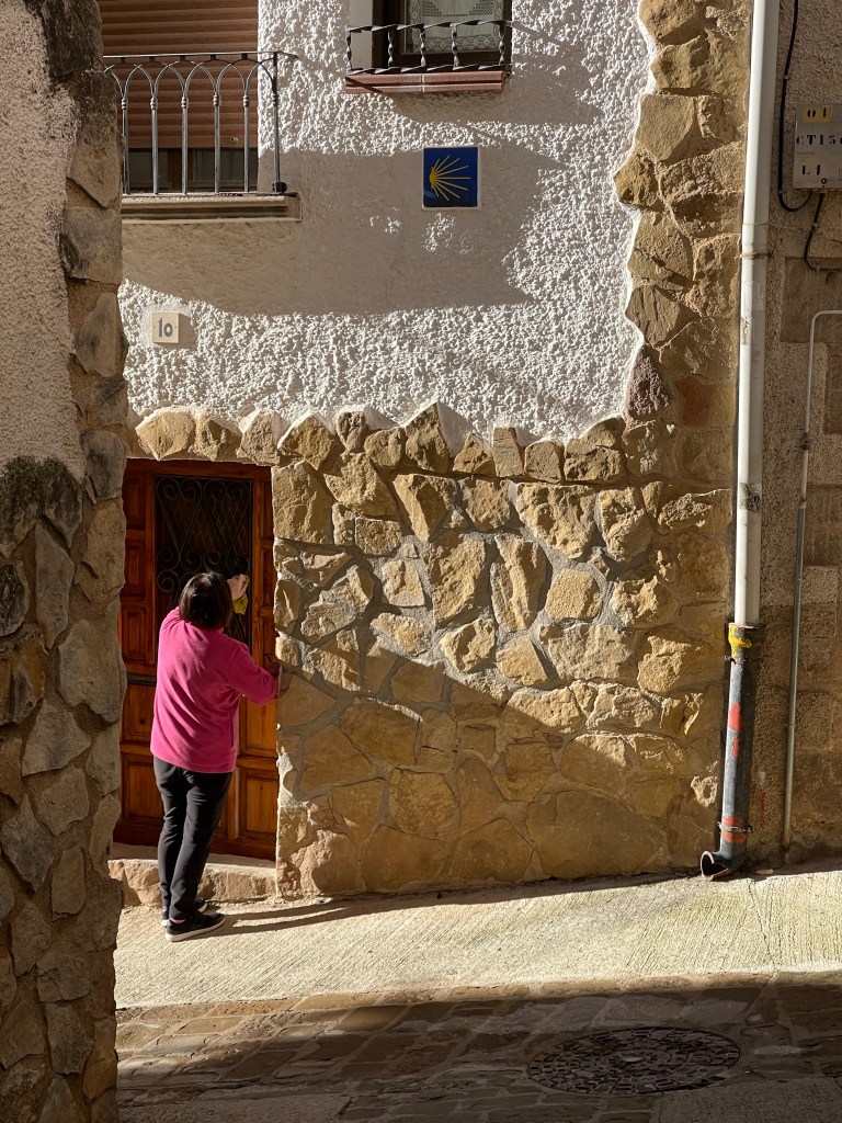 Feeling hungry after leaving Villatuerta, I stop at benches near a lone church to snack, and realise—torreznos are like the crispy part of a siobak. I then get curious and decide to try get into the church. There’s simply a cross in the wall and a stone altar, and for some reason, a picture of a young girl on it. I don’t stay too long.