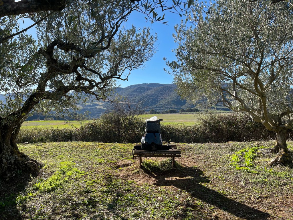There’s a steep uphill I take before the town of Lorca is revealed. There’s a seat right at the top so I invoke “the rule of the seat” and let my breath even out and stretch.