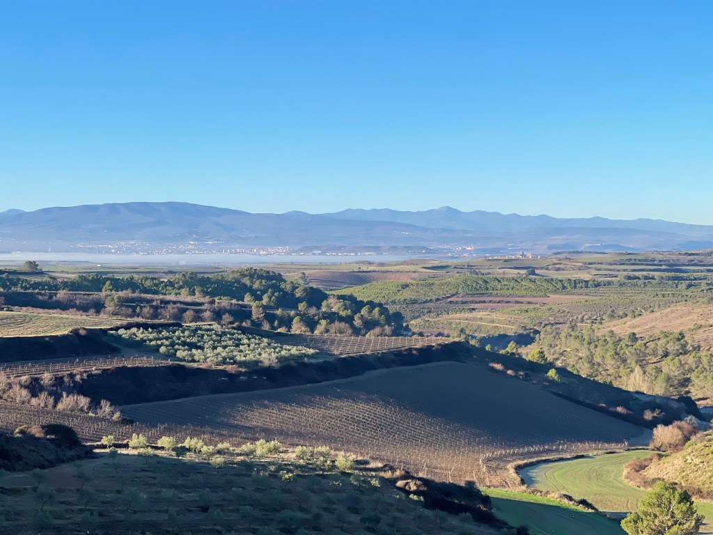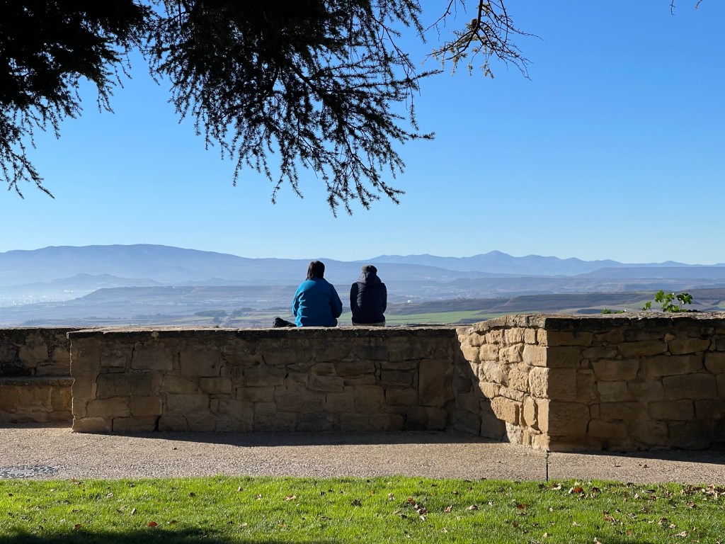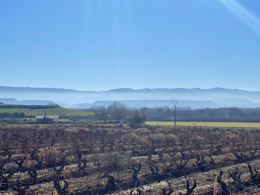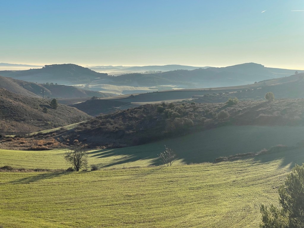 I continue on, towards misty silhouettes of a mountain range beyond the vineyard. As I approach a church, something smells great. I go past the church and behind it see a family having a barbeque, and realise I do miss them. Viana recedes behind me as I walk past more farmland and vineyards.