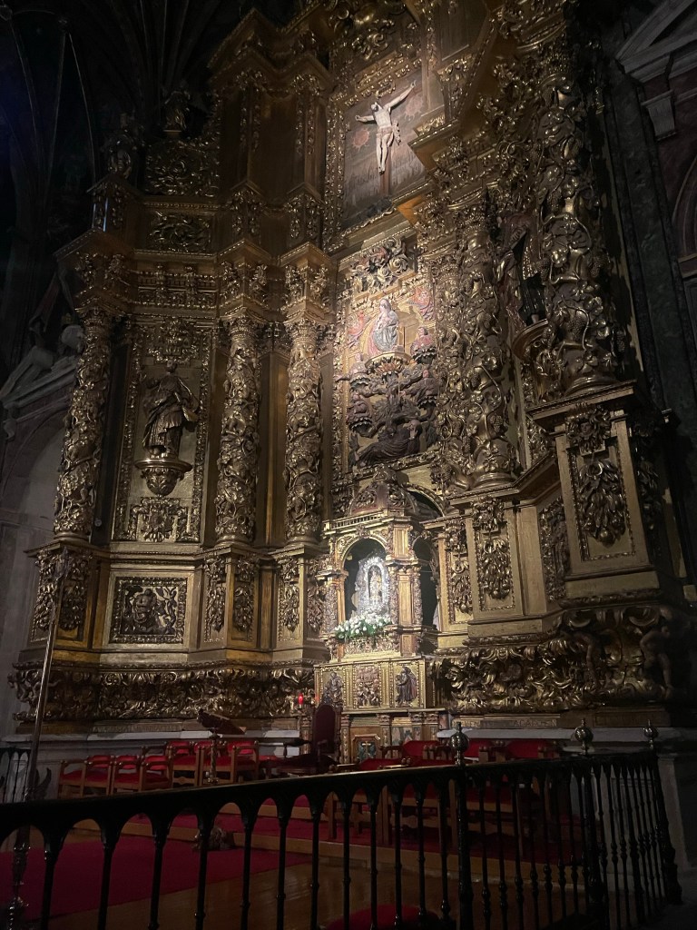 We exit the restaurant and suddenly the city is cold and foggy, like what we expected when we decided to do a winter Camino. We take refuge in a church, which is warm inside.