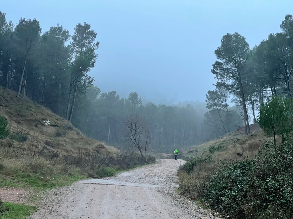We leave to wet pavements on an overcast morning and leave the town by ascending to a misty forest. A light but constant drizzle starts, our first rain on this Camino, and we change into our rainwear.
