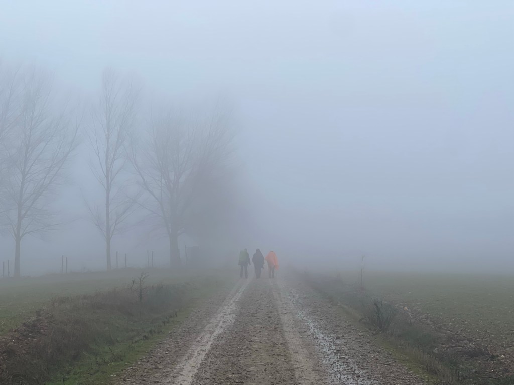 We go past a golf course and share our coincidental mutual disdain for the activity. Nearby, they is a car collision accident at a junction, probably caused by the low visibility of the fog. A lady involved sees us and still wishes us “buen camino”, despite her troubles of the day.