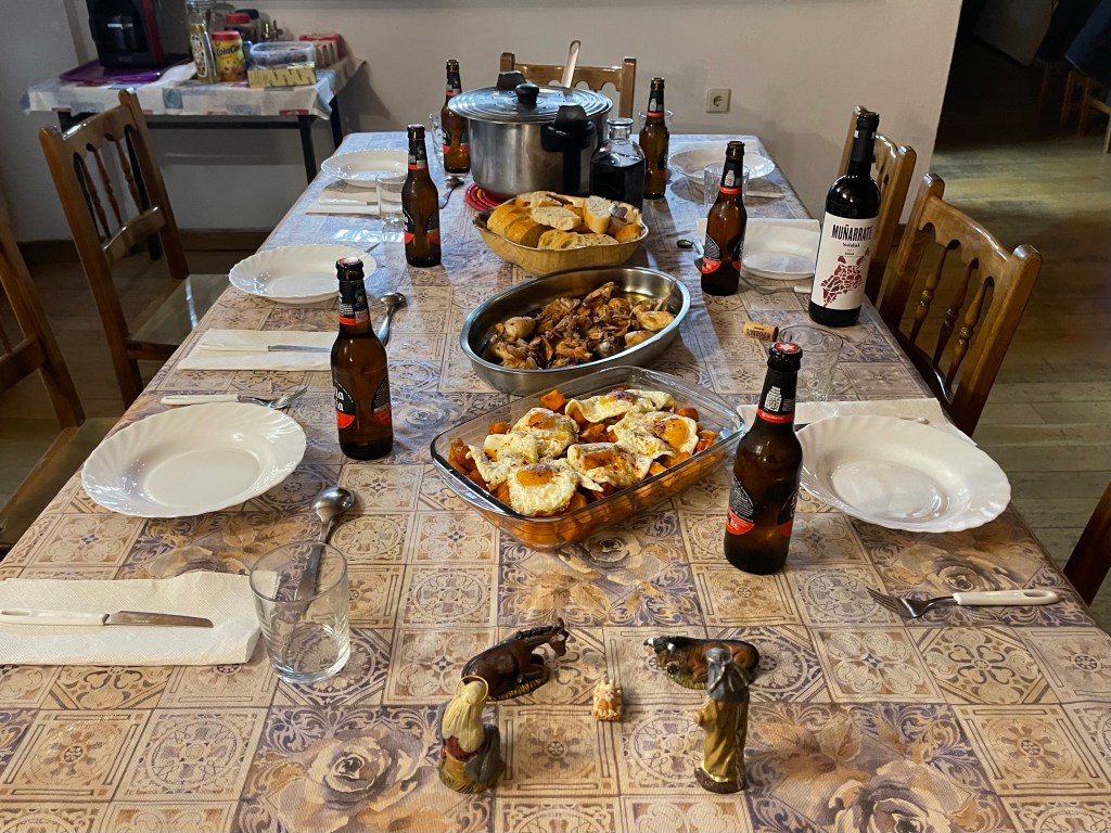 After cooking up a storm, it is 9pm and we are hungry. One more set of cutlery is laid out so that “in case a pilgrim walks in, he has a place to eat”. Fermín sits us down, and it feels like we are about to say a solemn pre-meal grace. Then Fermín starts hitting the table and clapping in rhythm like “We Will Rock You” and says, here, we do a rap prayer.