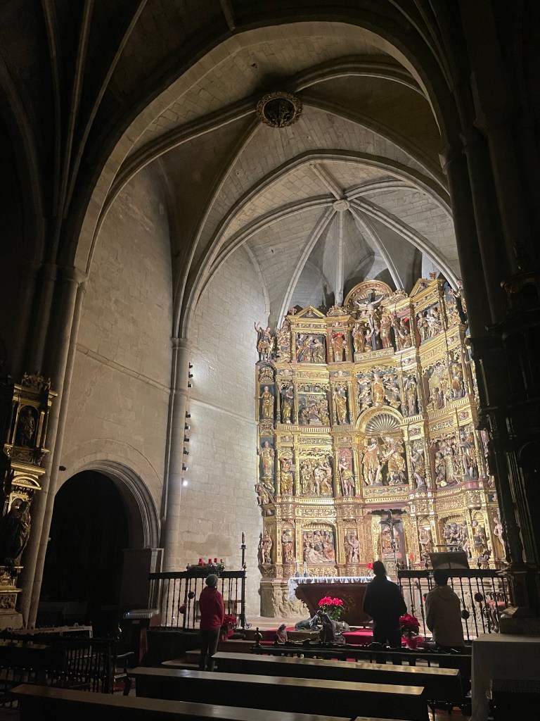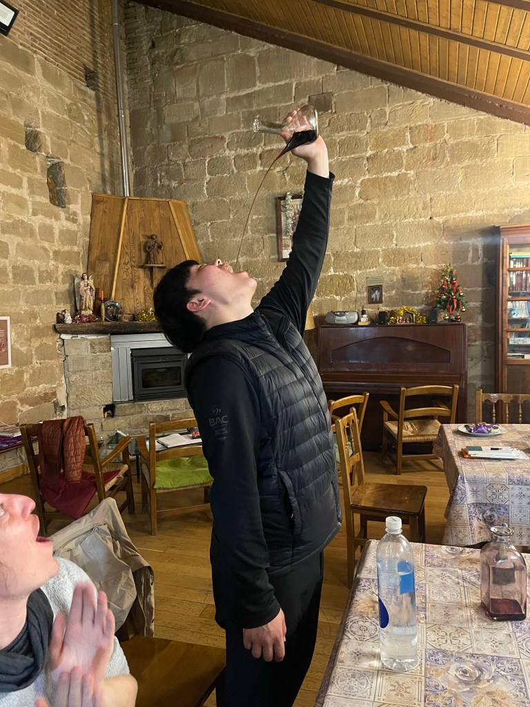 We tuck in, and everything is really good, done to perfection. The best meal on my Camino thus far. The regional La Rioja wine is also great. Fermín tells us that when we are done, he will bring us into the church by a secret passageway for a special ceremony he does with every group of pilgrims that come here.