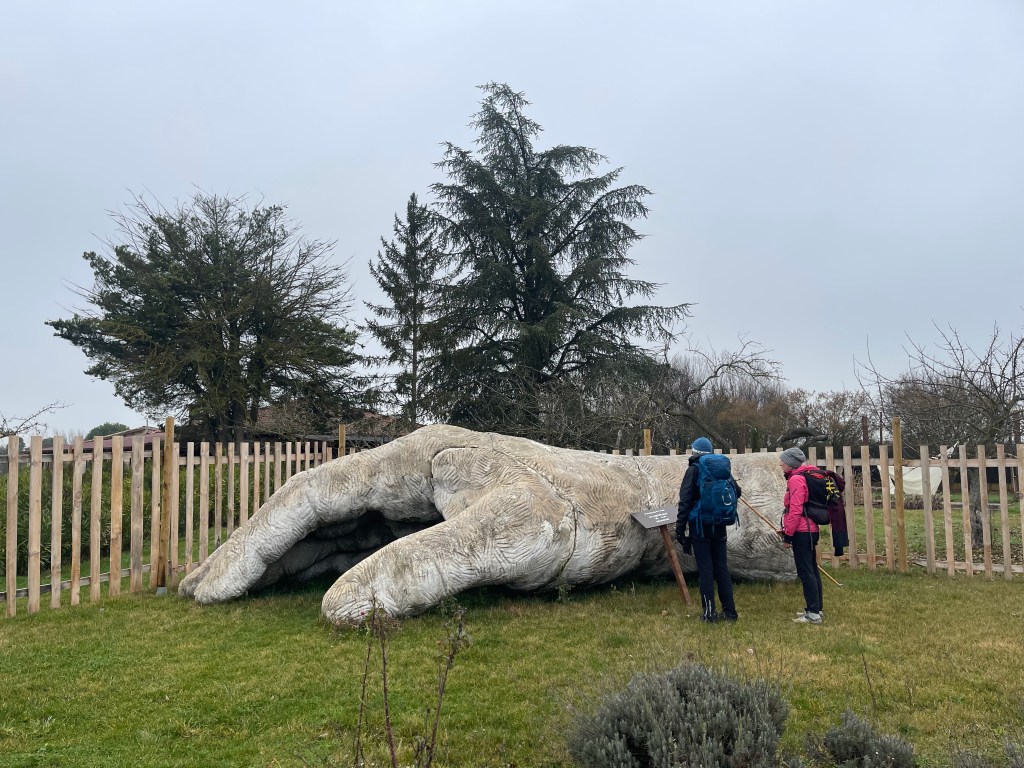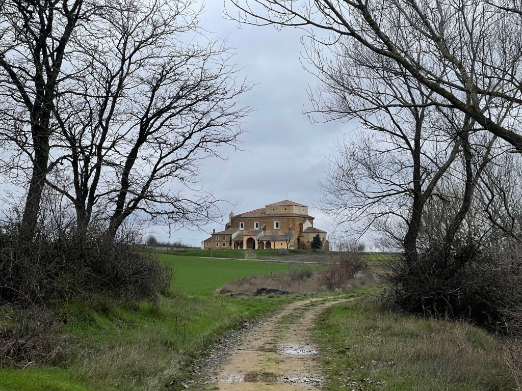 Mist closes in from far away. The land evens out to wide, flat plains. My thoughts wander, just like the first days when I started walking on my own. It’s just me on an open, almost straight road. With a single stick, hood on my head, crossing a muddy path—it feels like I’m cosplaying as St. James (the eponymous Santiago). A town appears in the distance—ah, sweet relief, this must be the town I read about in the codex…Boadilla!
