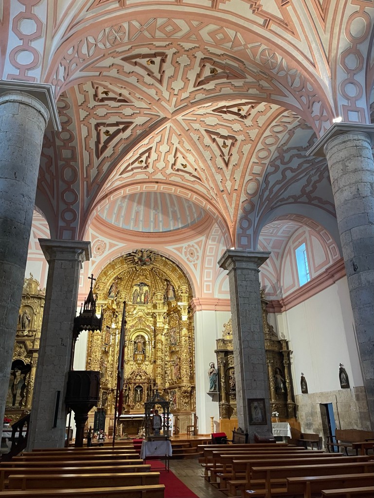 It’s the church of Santa María Magdalena, the other Mary, which is peculiar. There are three older men outside the church and we are invited in to take a look. It has pretty pink details on the ceiling. We are told we are one day early to the procession of bringing a figure of “young Jesus” around the town. It’s a tradition that might be lost, because only 8 older men in the town carry it on.