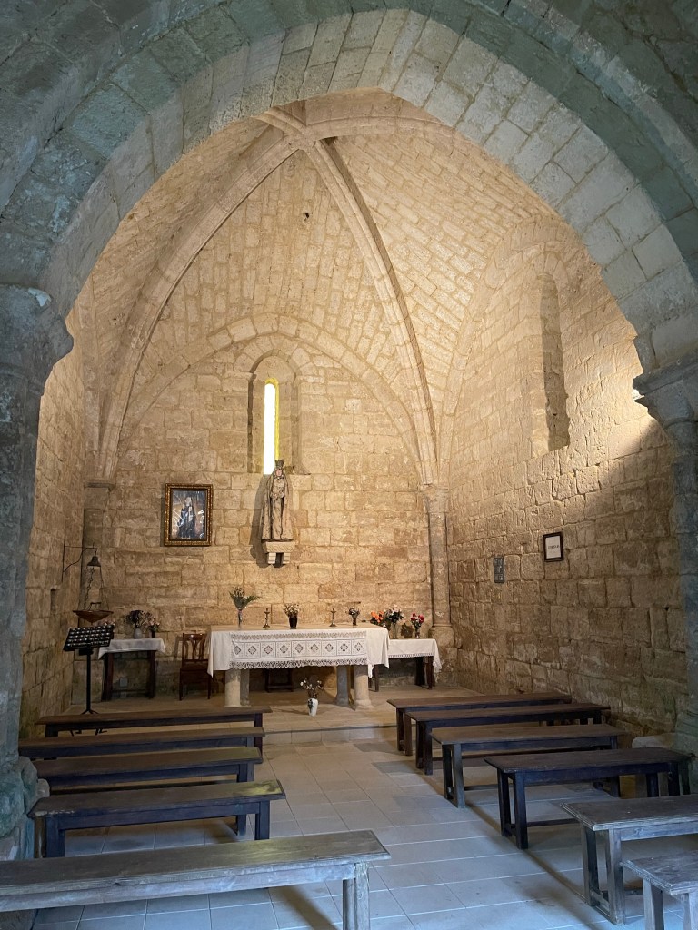 The men explain how the Camino gives life to this town with the pilgrims that pass through. They’re also keen to show us the smaller, simpler, original church built on lower ground before the official church was moved to the current one because of flooding. At that church, they point out that it is an example of the transition between the Roman and Gothic styles with the angle of the ceiling arches. We’re glad that they are proud to share so much with us, and having Ingrid to engage in Spanish is a blessing.