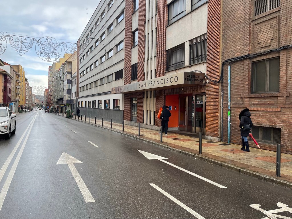 A short walk from where we get dropped off, we check into Albergue San Francisco de Asís, a modern-looking one. We get a room with two bunk beds and its own bathroom, which is luxurious compared to the squeeze of past nights’ albergues.