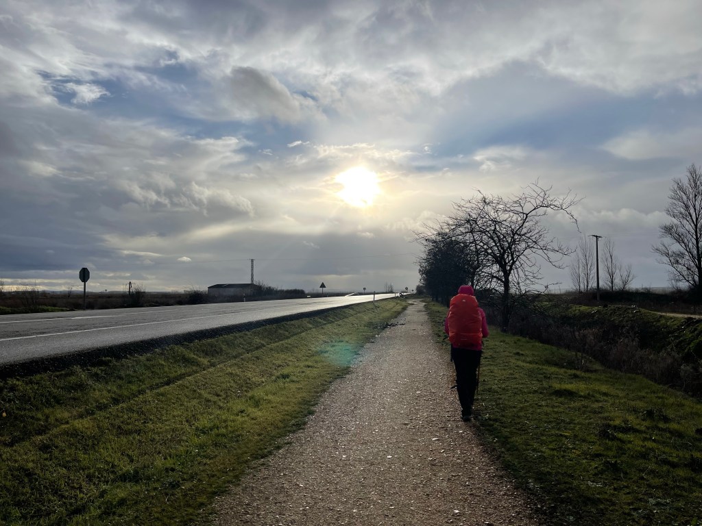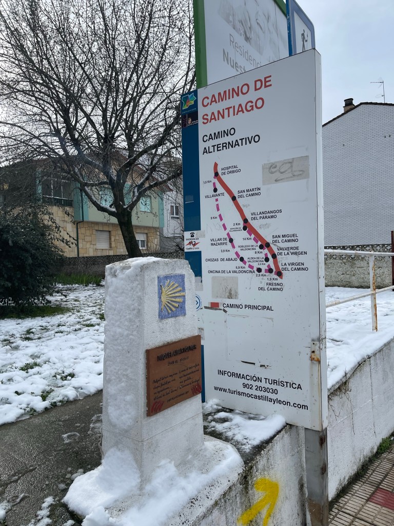 We start walking at 10am. It’s a long way out of León. Some of the sidewalks have ice frozen over them, and I have my first slip and fall. We cross into Trobajo del Camino, which is more of a town demarcated as separate from the city of León rather than a town in itself. There are a lot of Chinese shops here.