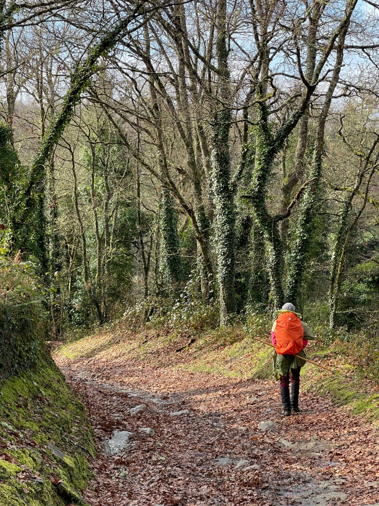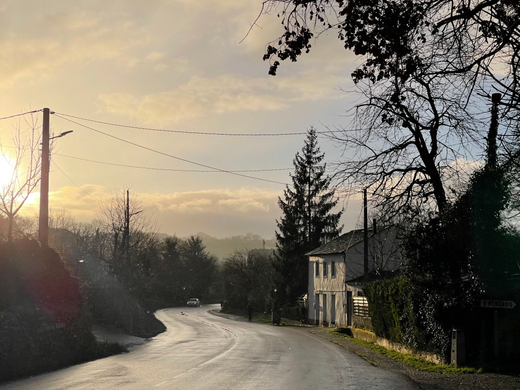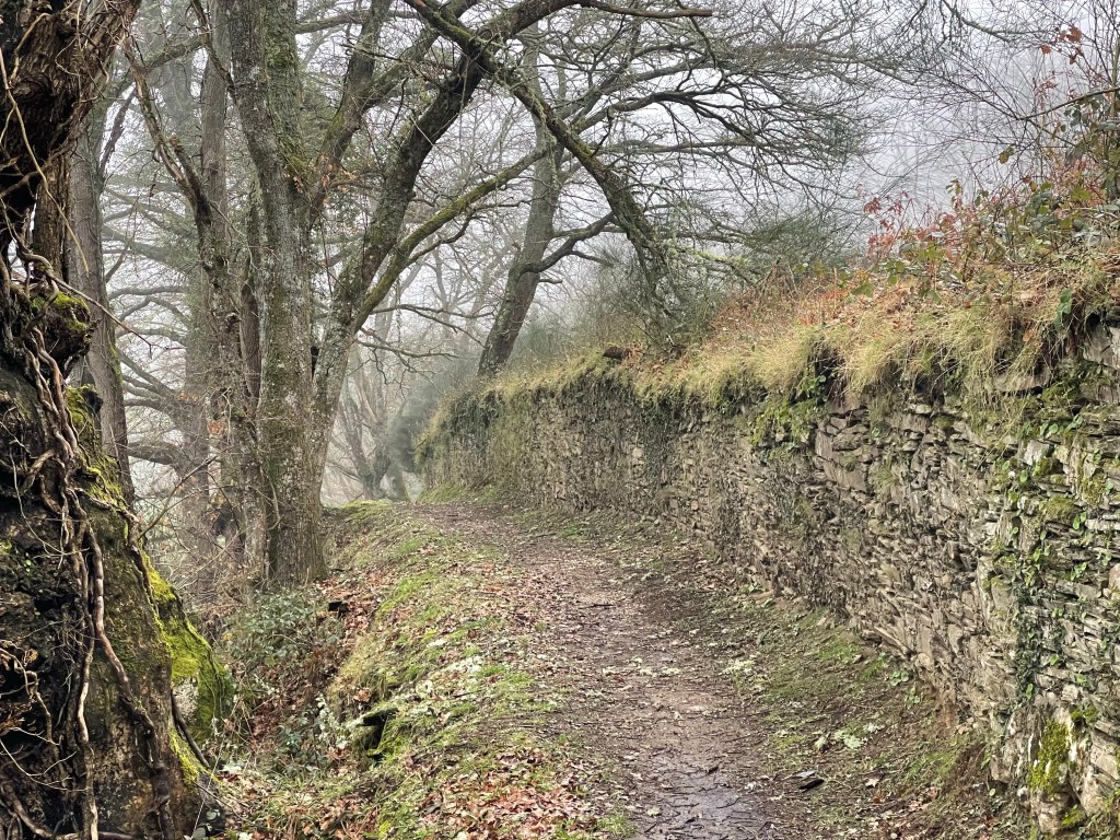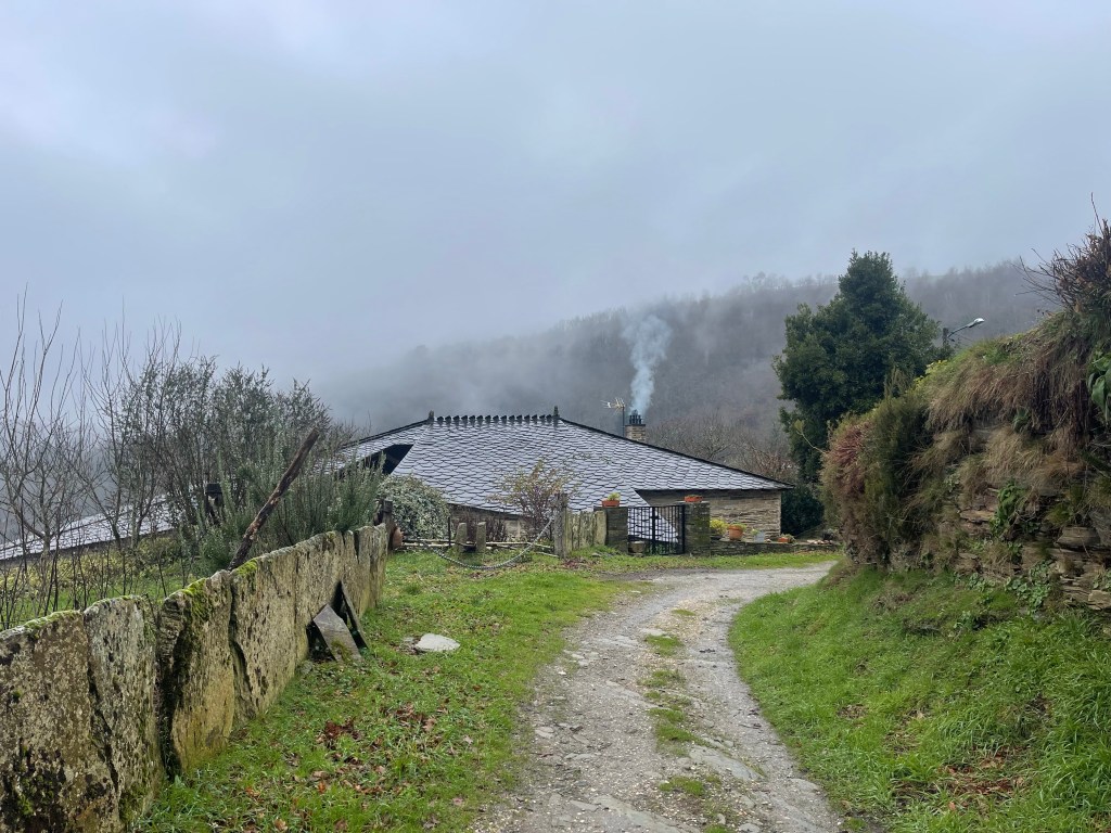 I stop to take a pee after San Cristovo do Real, and so I end up without Ingrid. The path after goes through forest, and with the twisting branches, the moss and the mist…being alone in the forest takes on a mystical air. I wouldn’t be surprised if I found a witch now.