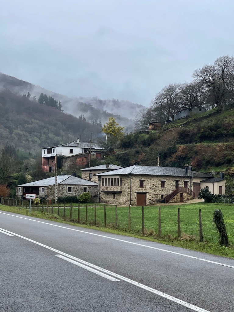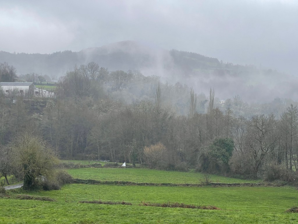 We set off to a light drizzle. The forest ahead is misty. At this stage you have to choose between two ways, via San Xil (17.8km), or via Samos (25km). Both are known to be good walks. Ingrid and I choose Samos because the route is closer a river, and there’s apparently a beautiful monastery at Samos.