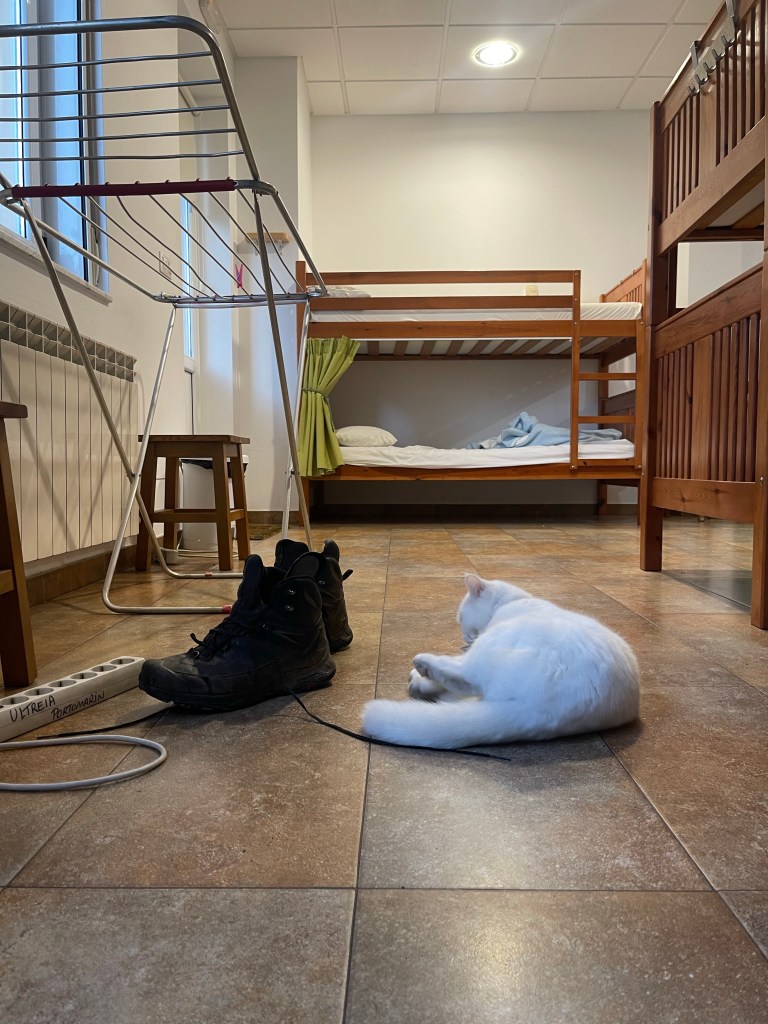 At 7.20pm, we step into the Xunta albergue. Out from the dark common room emerges Antonio, and we hug. He wanted a quieter place tonight.