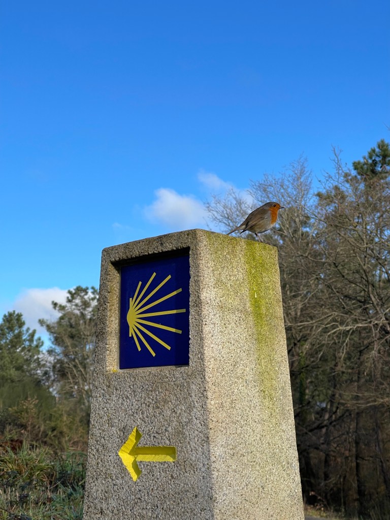 There’s a short complementario route detour, which I take. I ascend the hill, away from Portomarín and the river, back into the forest. Autumn leaves pad the ground, and there’s beautiful birdsong all around me.