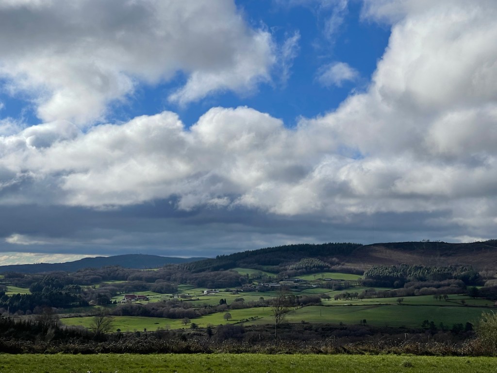 The sun is behind heavy cloud cover, so it’s not too good for photos. Today’s countryside landscapes are “ordinary” compared to some other parts of Camino. But I am still appreciating every moment, being in this much space on my own. It’s something I won’t get to have soon in Singapore.