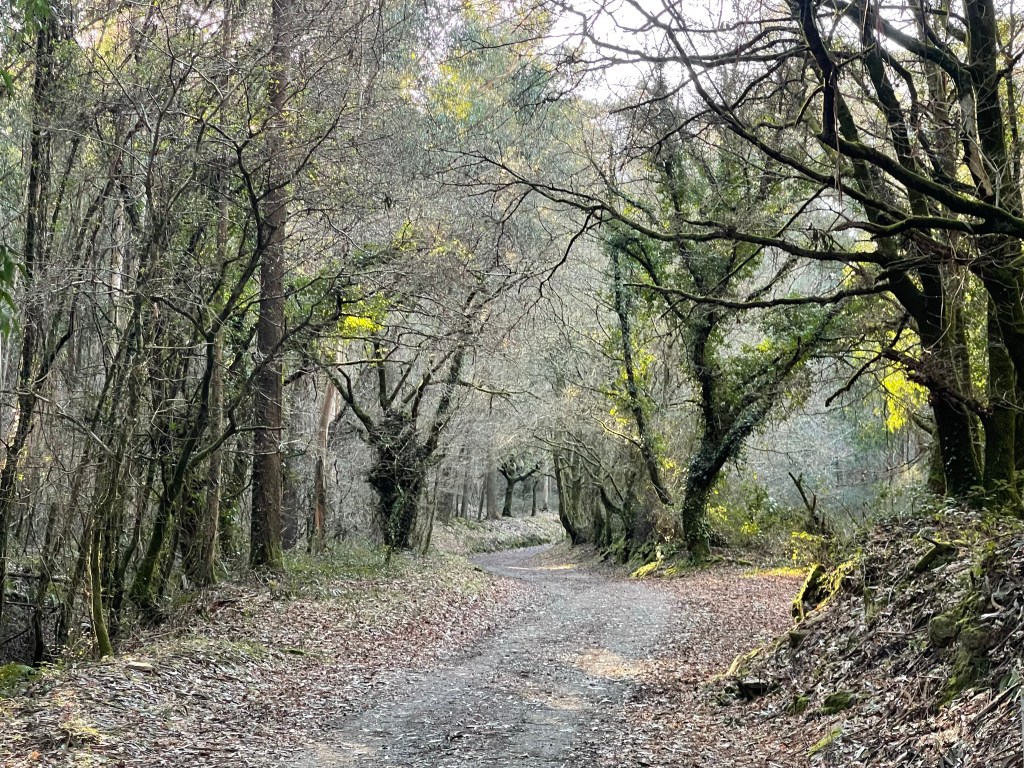 It’s a sunny 7°C, with not a cloud in the sky. We walk alongside a canal, then a forest path with a farm on right. There are birds in the air. It’s another beautiful day in Galicia, but we are both feeling a bit weak. We walk steadily but at a slower clip. Dreaming of caldo gallego.