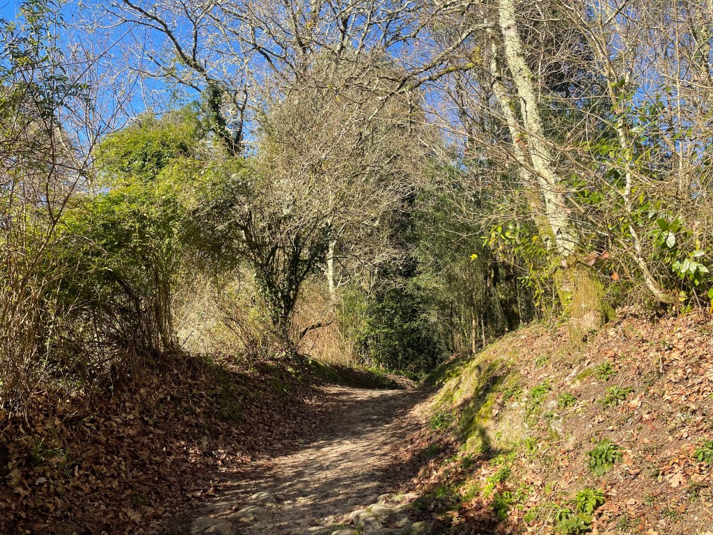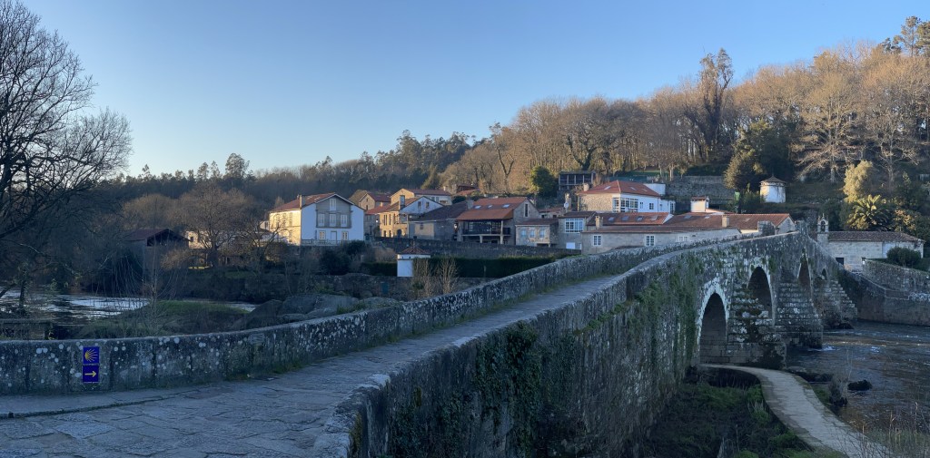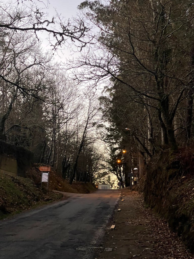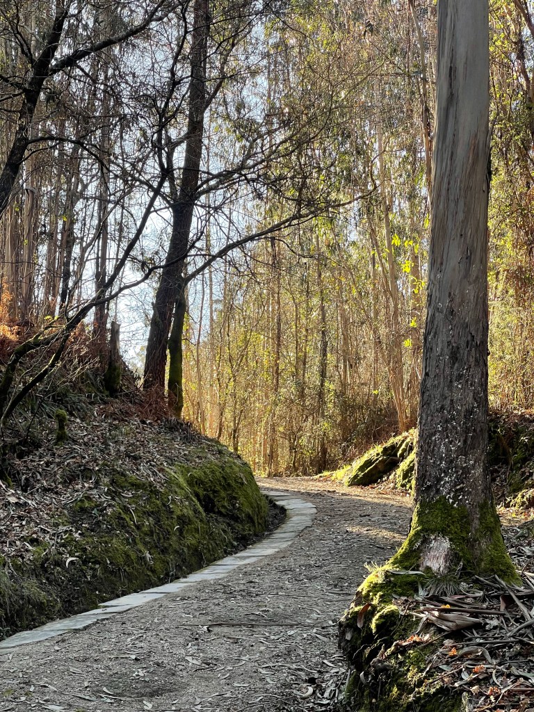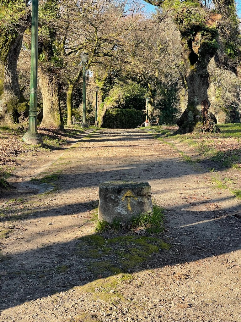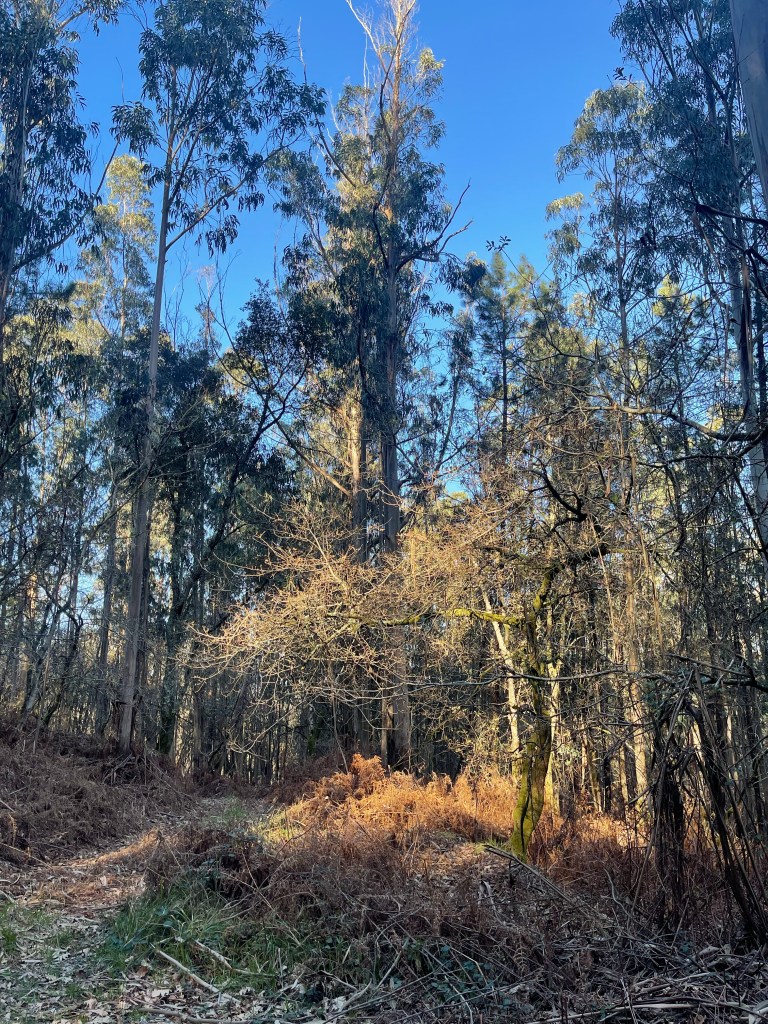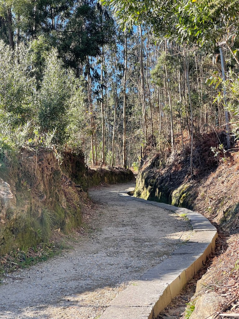 It’s not immediately obvious where the arrows are. But after initially referencing the map in the Xunta app, we soon reach the first few signs, and it starts to be clear on its own. It gets quiet quite quickly after leaving the historical centre of the city. A strangely familiar sensation returns—it feels like we are resuming the Way. Right outside the city, we’re soon back to the familiar terrain of Galician forest and countryside. It’s a sunny 8°C.