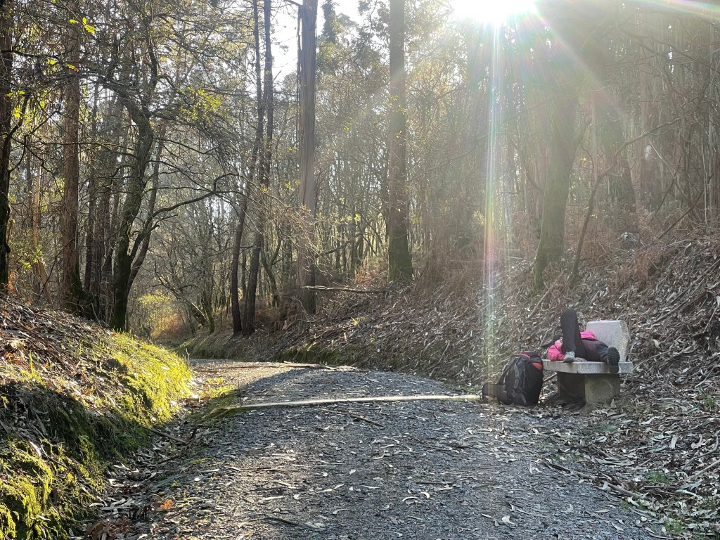 I catch up with Ingrid at the top of the incline, who has found a nice bench for a siesta. It feels like an amazing time for one. I walk ahead and find another bench for my own siesta too.