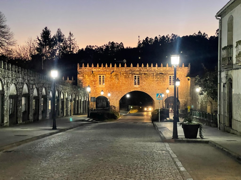 Negreira is a modern town with rows of short buildings and old-school street lamps lining a busy main street. I pass a roundabout with a bull sculpture sitting atop a fountain in the middle. Making my way through the town, I walk towards a castle arch at the end. It’s quieter and darker after passing through the arch. The Xunta albergue is a fair bit out of town, and I take some time to reach.