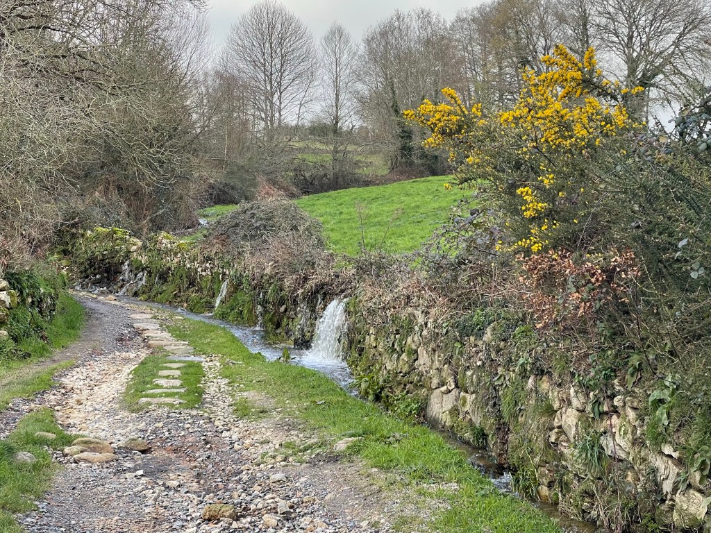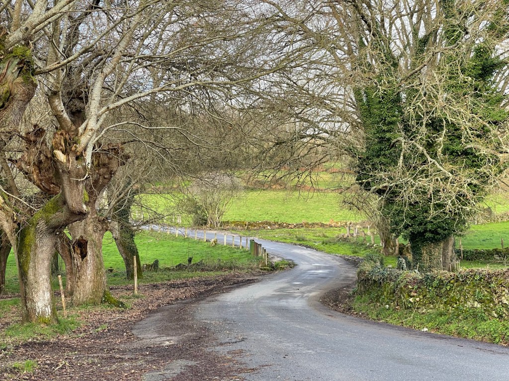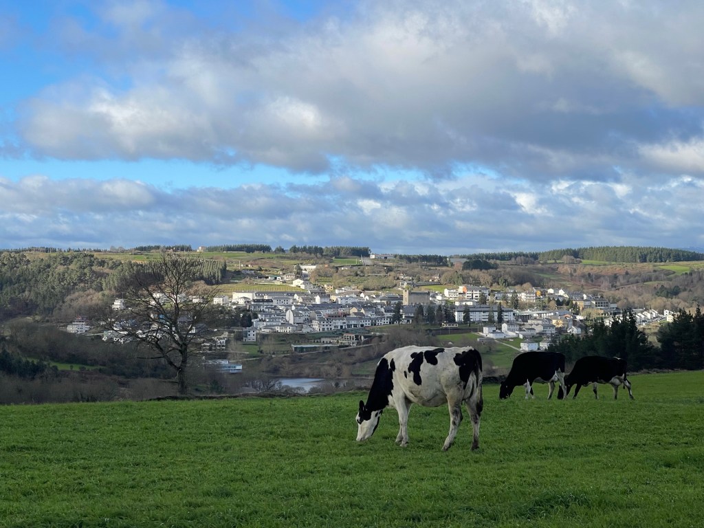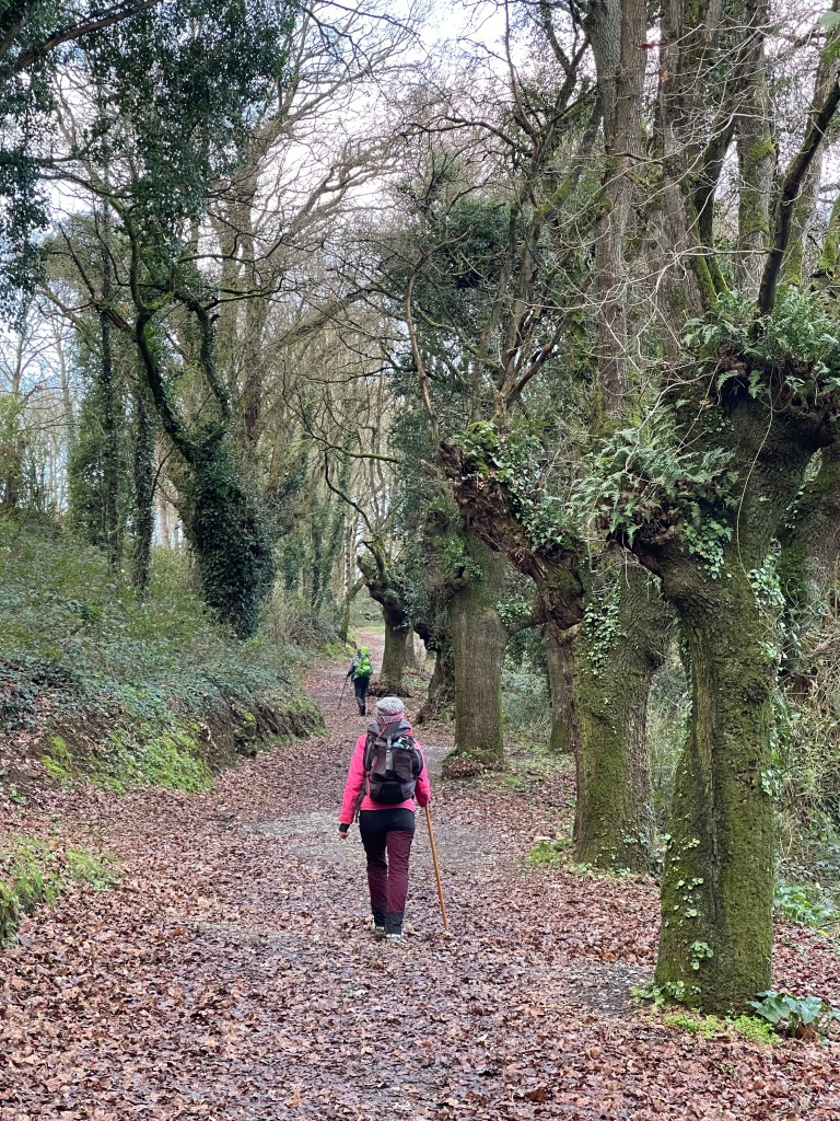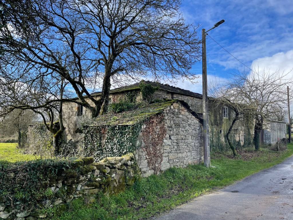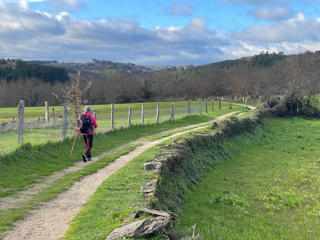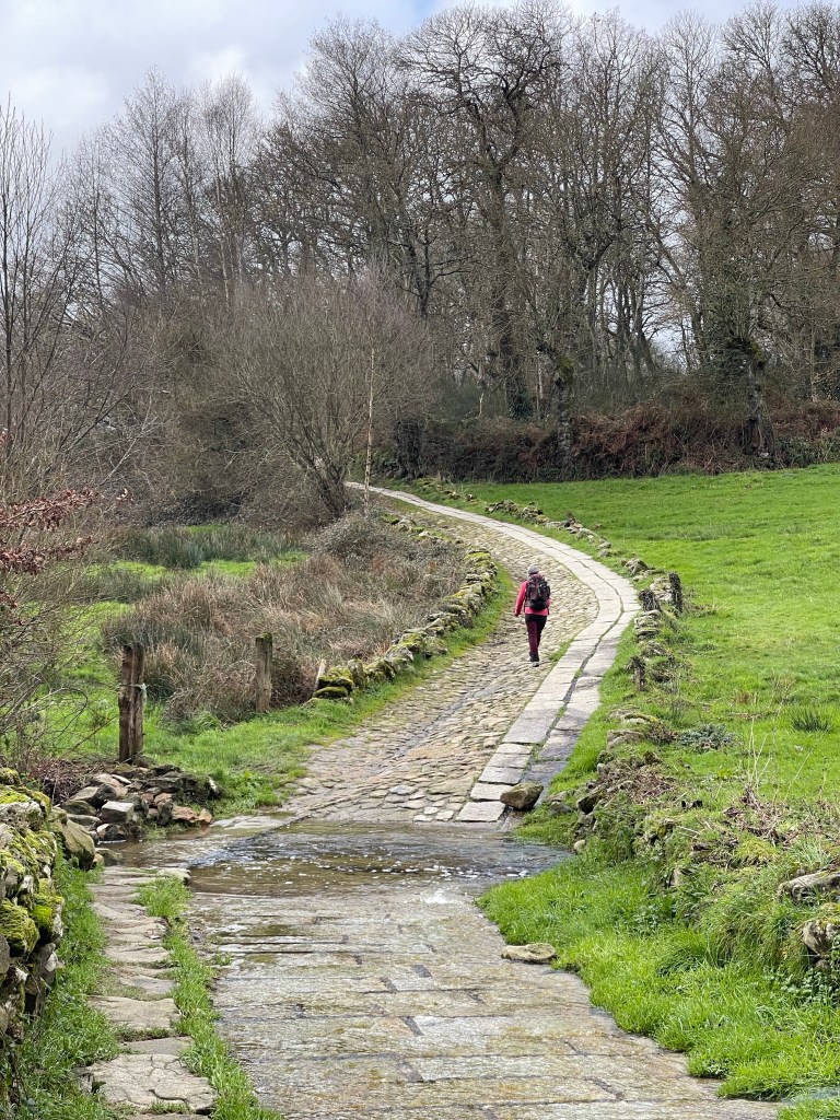It’s a sunny 7°C, with not a cloud in the sky. We walk alongside a canal, then a forest path with a farm on right. There are birds in the air. It’s another beautiful day in Galicia, but we are both feeling a bit weak. We walk steadily but at a slower clip. Dreaming of caldo gallego.