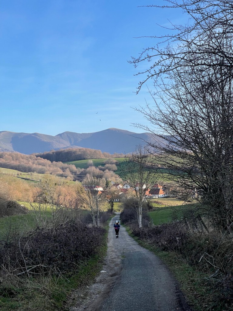 We continue on a relatively straight gravel road for quite a distance, with similar fields around us, and the town of Sansol in view up front. It’s a walk some might find boring, but I enjoy the space.