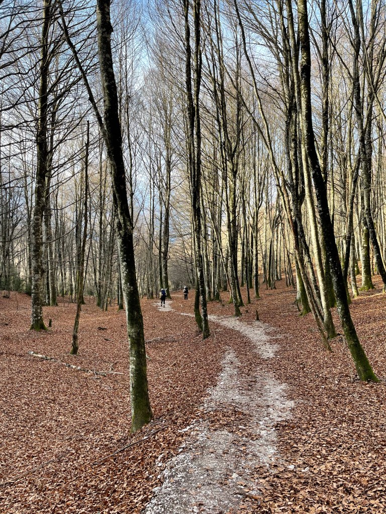 Sun bakes down through clear sky, and soon enough it becomes T-shirt weather. I tell the Koreans to walk ahead, as I take a food break. I continue on, alone with my thoughts and chocolate in my mouth. I meditate, and focus on my posture and stride. Gentle winds stir, enough to cool down but not chill me.